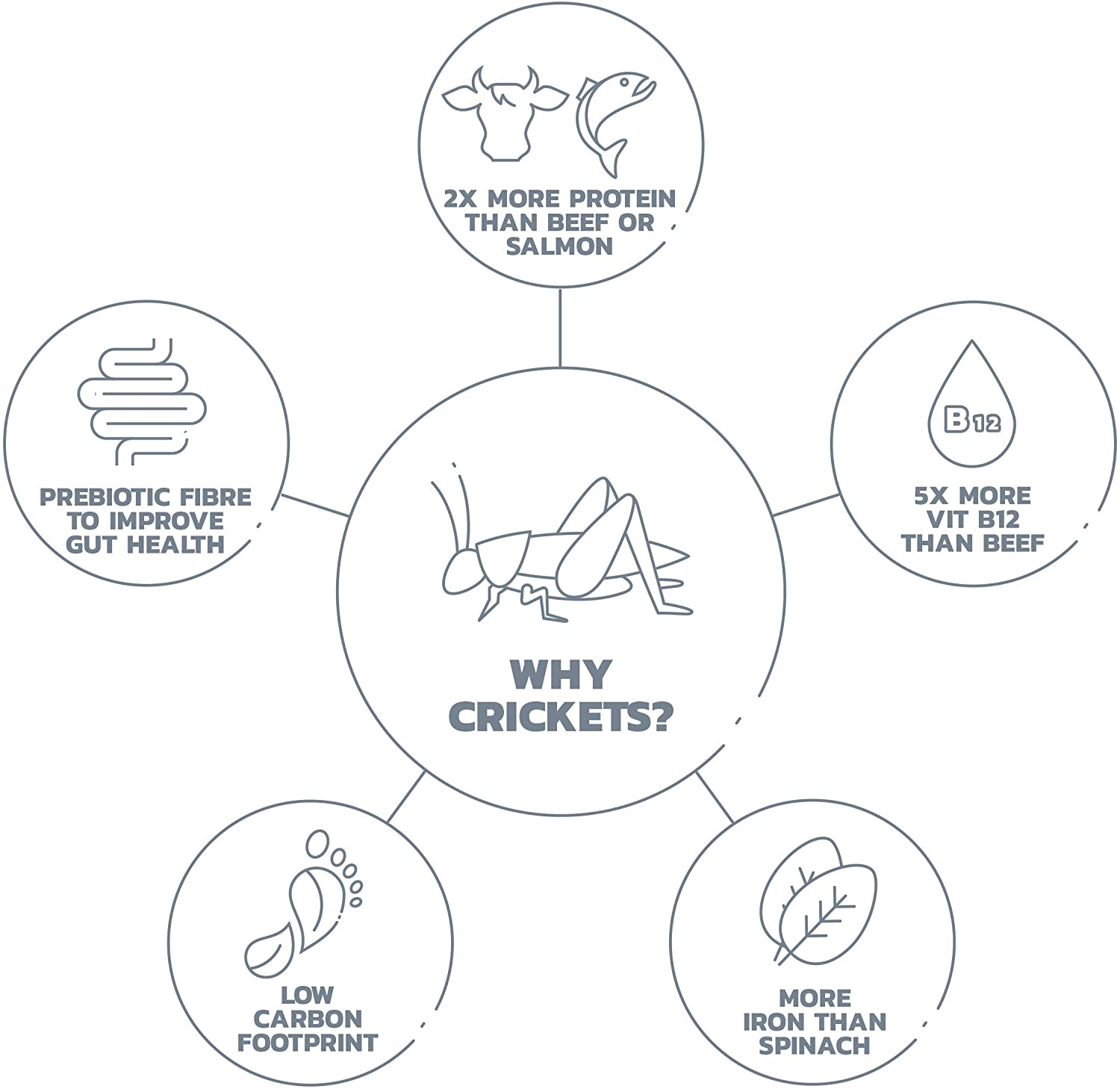 Porque son una fuente de proteínas premium y sostenible. Los grillos tienen todos los aminoácidos esenciales para convertirlos en una proteína completa que nuestros músculos absorben fácilmente. Esto los hace similares a la proteína de suero, pero sin la hinchazón que a menudo se produce.
