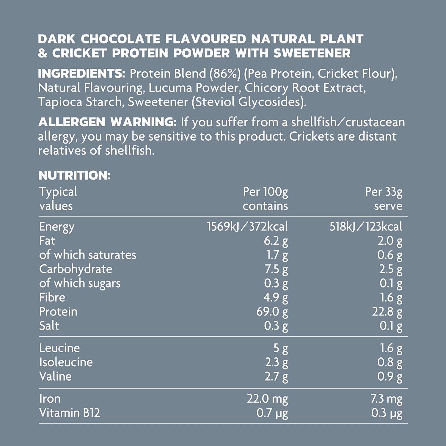 I bought this for my son who wants to increase his protein intake. He’d heard that crickets at full of protein and very healthy. So far so good as he likes the taste – he says it’s quite malty, a bit like Ovaltine, and it’s less bloaty than some other powders he’s tried. It was delivered very quickly too
